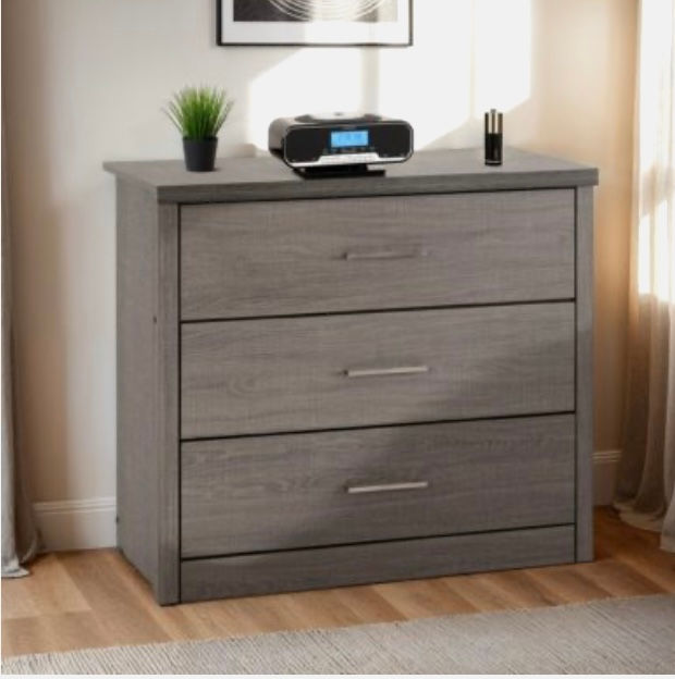 Upgrade your bedroom furniture with the classy Kendal range. This smart bedroom range will suit any classic or contemporary interior scheme. featuring brushed steel cup handles for ease of use and Mounted on a deep base plinth, the soft grey finish contrasts perfectly with the bevelled oak-effect top. the Kendal is a perfect choice for any bedroom.